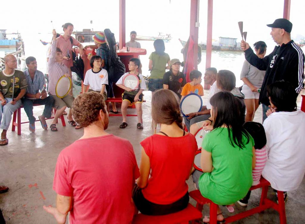 Stepping into a sampan at Penang Chew jetty, visitors to the music concert swayed in the sea 500 meters offshore, heading to a platform hosting live musical performances and art exhibition. The air filled with the sounds of blues, folk songs, unplugged electronic psychedelic music and experimental music intermingled with the laps of the wind and wave greets the visitors.
