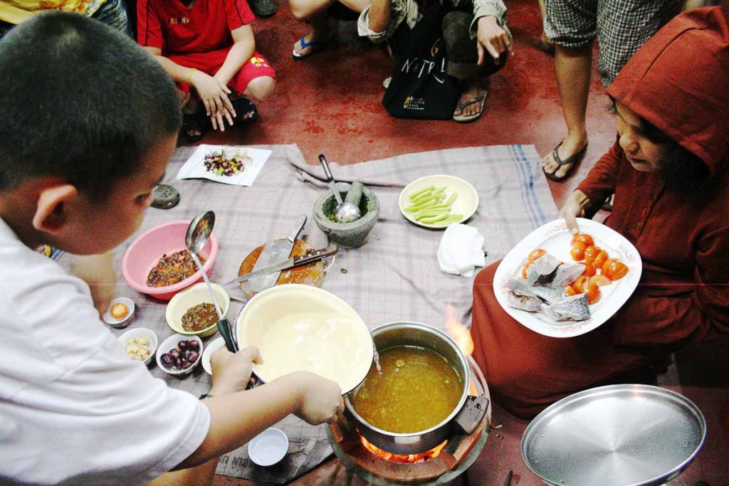 The residents engaged with the artworks, especially in the performances and installations, created a rousing atmosphere. Some highlights were residences spontaneously adding onto Aisyah Baharrudin’s cooking recipe, bringing their ingredients and flavours from their kitchen, into the dish, creating a communal dining performance. A broken boat, thought to be abandoned, had a livid owner carefully watching the artists create an installation in the middle of the sea with his boat. Daily watching the progress of the said installation, an old lady would comment and start telling stories from her past reminding us of our narratives placed within oral history and how far removed we are now from our own people’s histories.