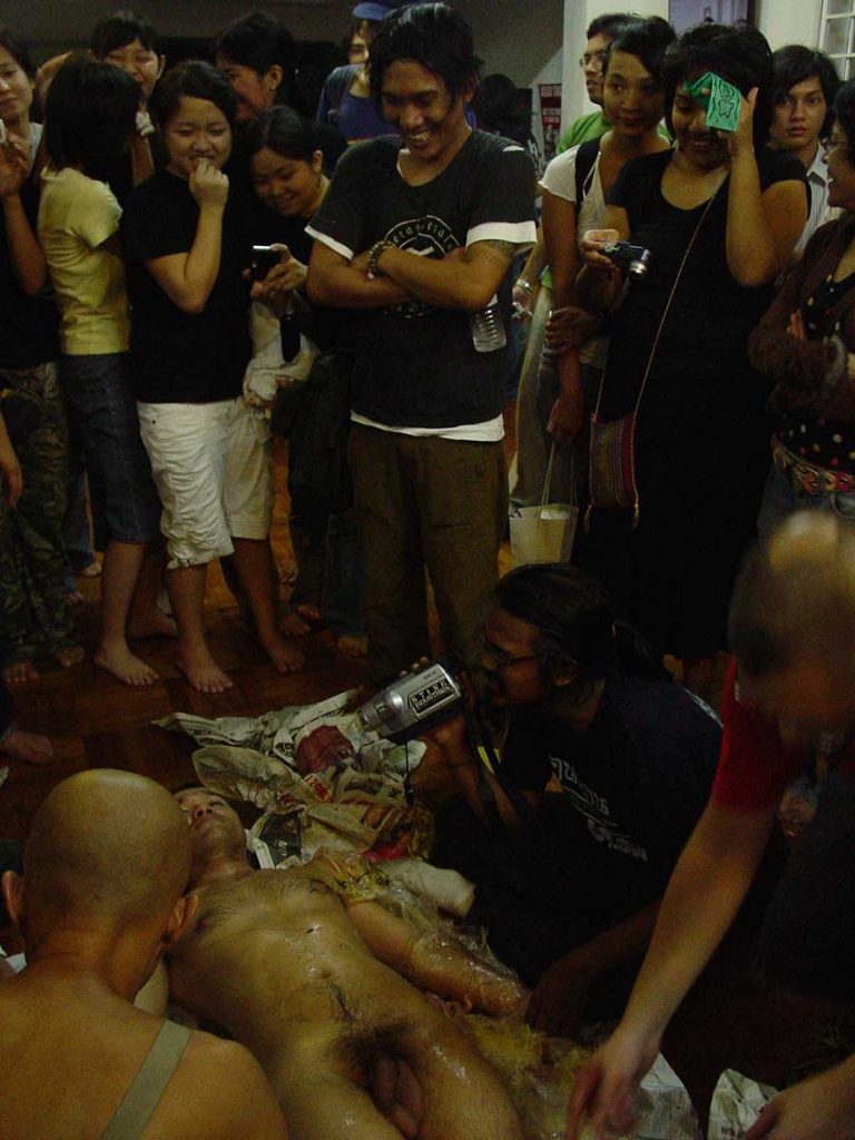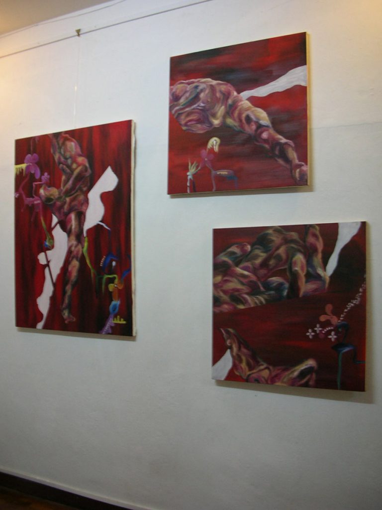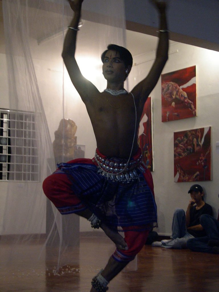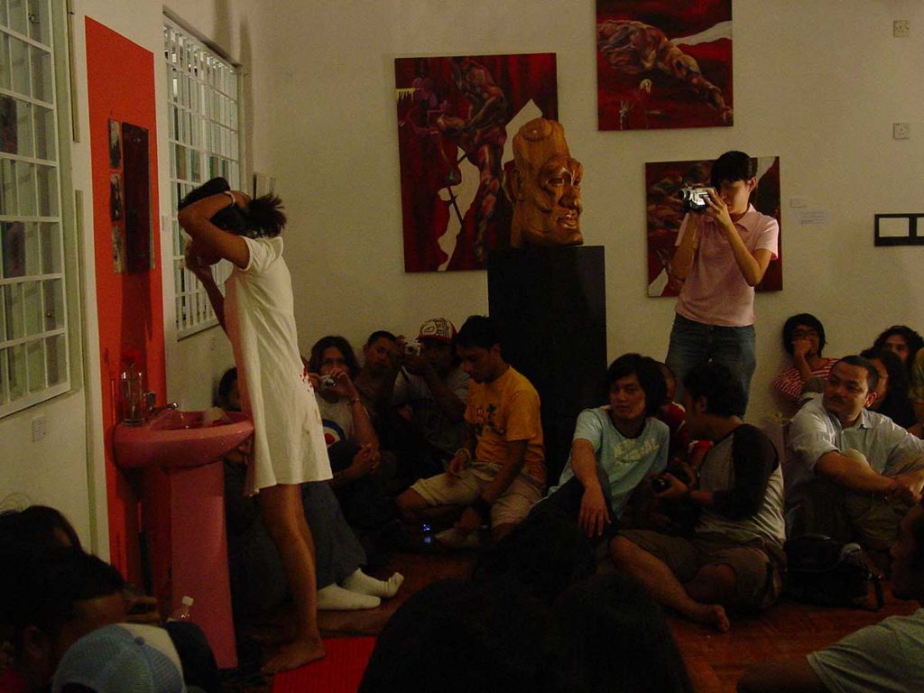 Indian based Bharanathyam dancer Rahul Acharya intimate and riveting dance amidst art installations ; exhibits that interrogate the abuse of power from the police by Fahmi Redza ; Aisyah Baharuddin’s menstruating and taking a dump at corruption; Saiful Razman and Rahmat Haron vulnerably strip to bare-bones performance. Nyoba Dance smashing performance enclosing the public and the private between audience and performer and many more.