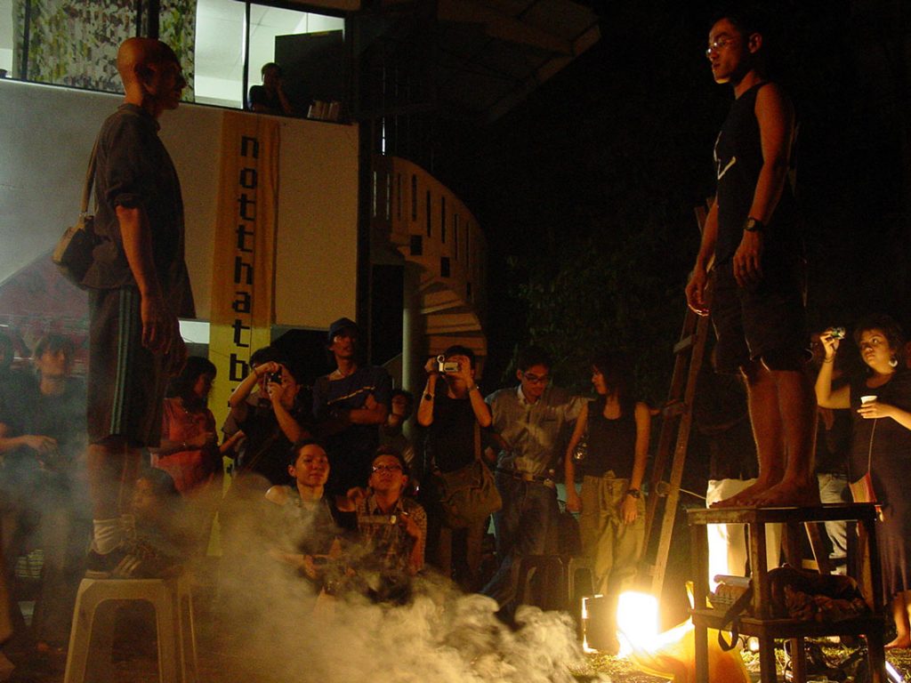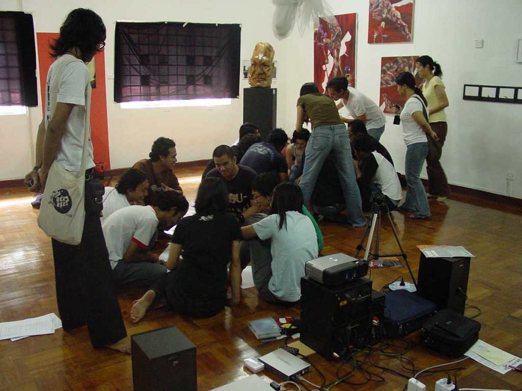 For young artists to find strength in artistic freedom, independent art spaces are pivotal as communal meeting points for critical discourse and expressions from artistic, NGO and intellectual communities looking beyond the needs and regulations of commercial galleries and national institutions. Autonomous and open-ended zones that allowed art practice to transverse social networks and media were found in collectives from the 90s such as Spacekraft and Rumah Air Panas among others. Lostgens collective and “notthatbalai” festival continue the paradigm in the same vein as envisaged at Chow Kit Fest 2002, organized by Spacekraft collective.